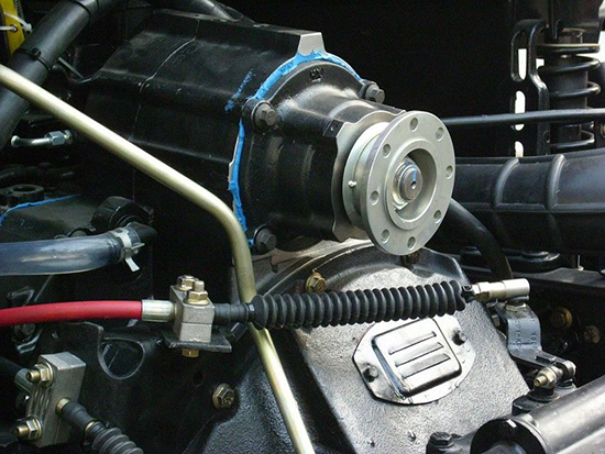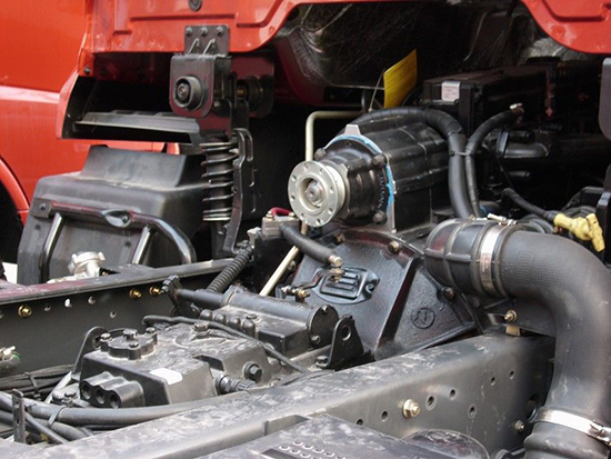 可以得到發(fā)動(dòng)機(jī)最大扭矩的取力器,一般在離合器和變速箱之間的變速箱一軸上取力。主要用于水泥泵車、高空消防車等需要大功率的專用車上